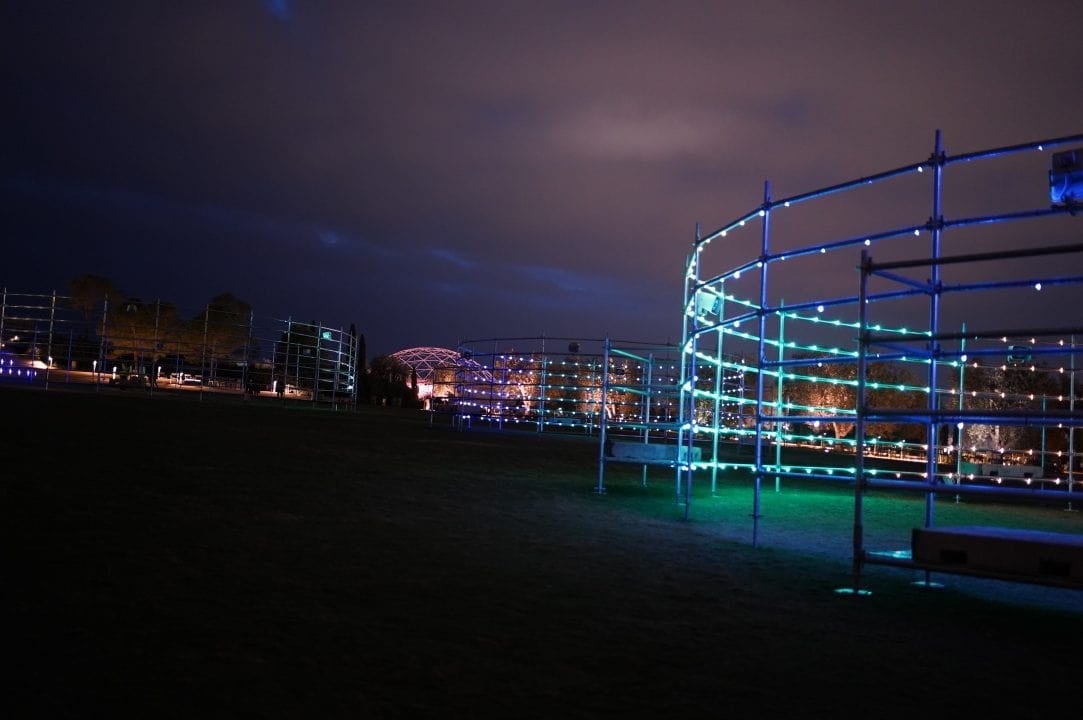 The concept of using sound loops and making them visible is inspired by the sound experiments done by Philips in the 60’s by artists like Dick Raaijmakers. We created three “Lichthouders”, two with a diameter of 15 meters and one with a diameter of 21 meters, all have the same 3 meters height. Each object contains several hundreds of led pixels.